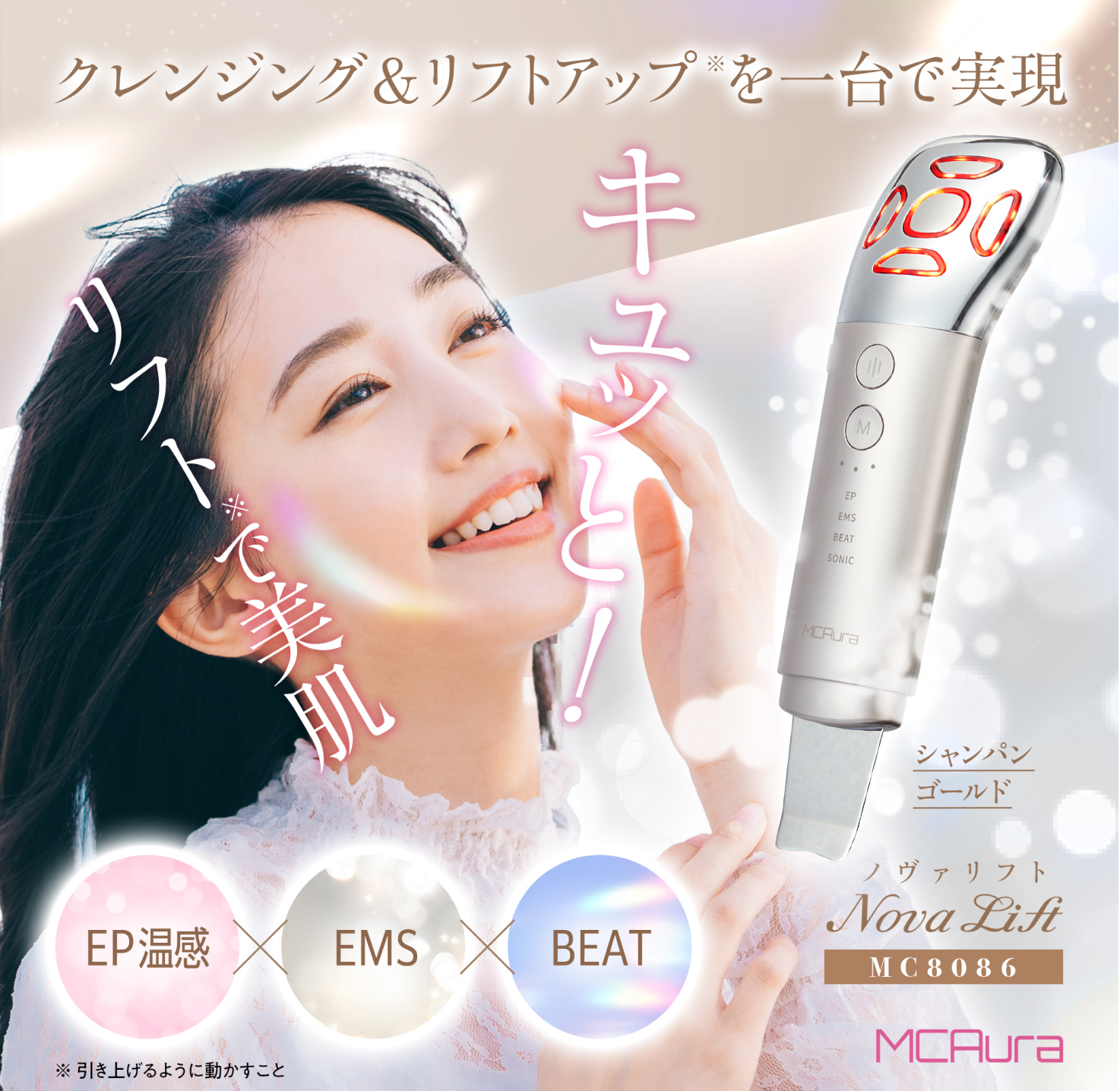ノバリフトは、2ボタンの簡単操作で「強・中・弱」の3段階調節が可能な美顔器です。4つのモード(赤色LEDのEPモード、黄色LEDのEMSモード、青色LEDのBeatモード、超音波SONICモード)と7つの機能を搭載し、肌の弾力・輝き・引き締め・クリアケアを包括的にサポート。特に「SONICモード」では、超音波振動が毛穴の奥の汚れや皮脂を徹底クレンジングし、美容成分の浸透を促進します。 さらに、突起のない「スーパーフィットヘッド」採用で、肌にストレスを与えず滑らかにフィット。5つの分割電極が均一にケアを行い、ムラのない仕上がりを実現します。深層(角質層)から肌を整え、ハリと透明感のある美肌へと導く、次世代のホームケアデバイスです。