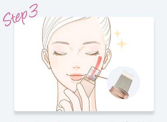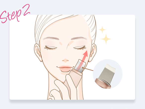 SONICモード選択。クレンジングの向きにプレートを持ち、肌をやさしくなでるようにゆっくり動かします。