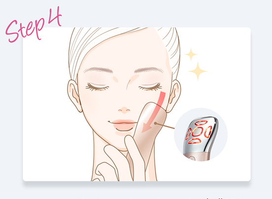 低周波が筋肉の収縮と弛緩を繰り返させ、表情筋を刺激。 引き締まった印象へ。