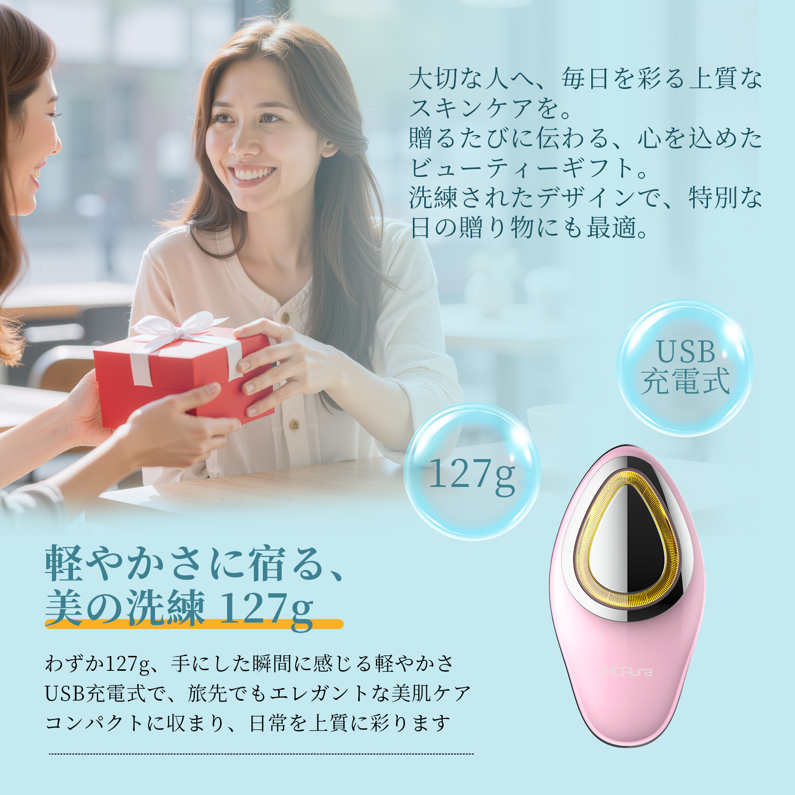 【洗練デザイン&ギフトにも最適】 シンプルで上質なデザインは、男女問わず使いやすく、日常使いや旅行・出張にも便利。 誕生日や母の日、父の日、記念日など、大切な方への贈り物にもぴったり。 自分へのご褒美アイテムとしても取り入れやすい美顔器です。