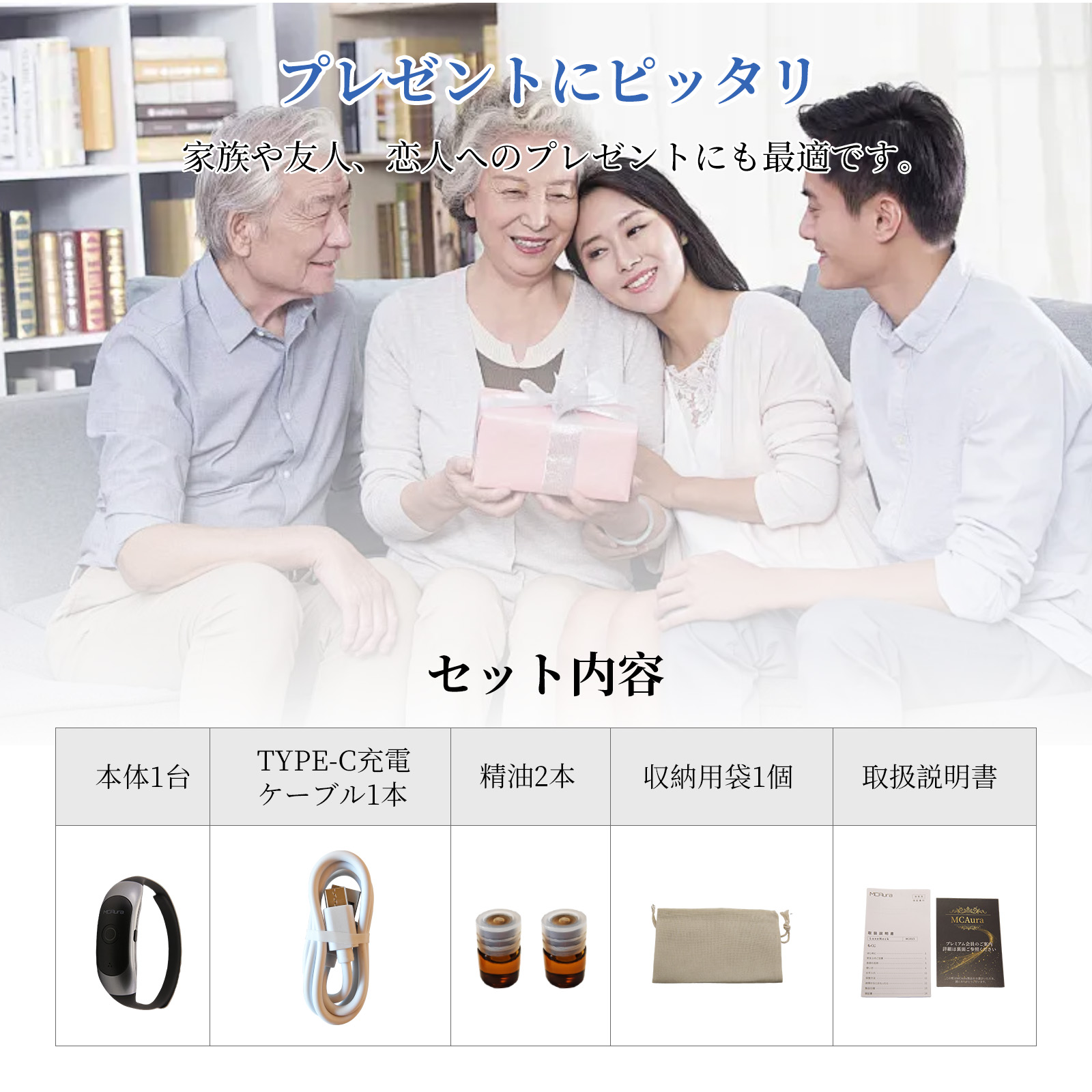 【製品仕様・保証・サポートについて】 ●ブランド/型番:MCAura / MC0515 ●セット内容:本体1台、Type-C充電用USBケーブル(※充電アダプタは付属しません)、精油2本、専用収納ポーチ1個、取扱説明書(保証書付) ●充電時間:約3時間 ●動作時間:約2時間 ●充電は必ず付属のType-Cケーブルをご使用ください。充電器はDC5V/1A対応をご利用ください。 ●【日本企画安心サポート】保証は日本国内でのご使用に限ります。商品不具合の際は、取扱説明書記載のMCAuraサポートまでご連絡ください。 ※本製品は医療機器・治療器・マッサージ機器ではなく、一般家庭用のリラクゼーショングッズです。持病や手術歴のある方は、ご使用前に必ず医師にご相談ください。ご不安な場合も医師へのご相談をおすすめします。 ※使用感には個人差があります。