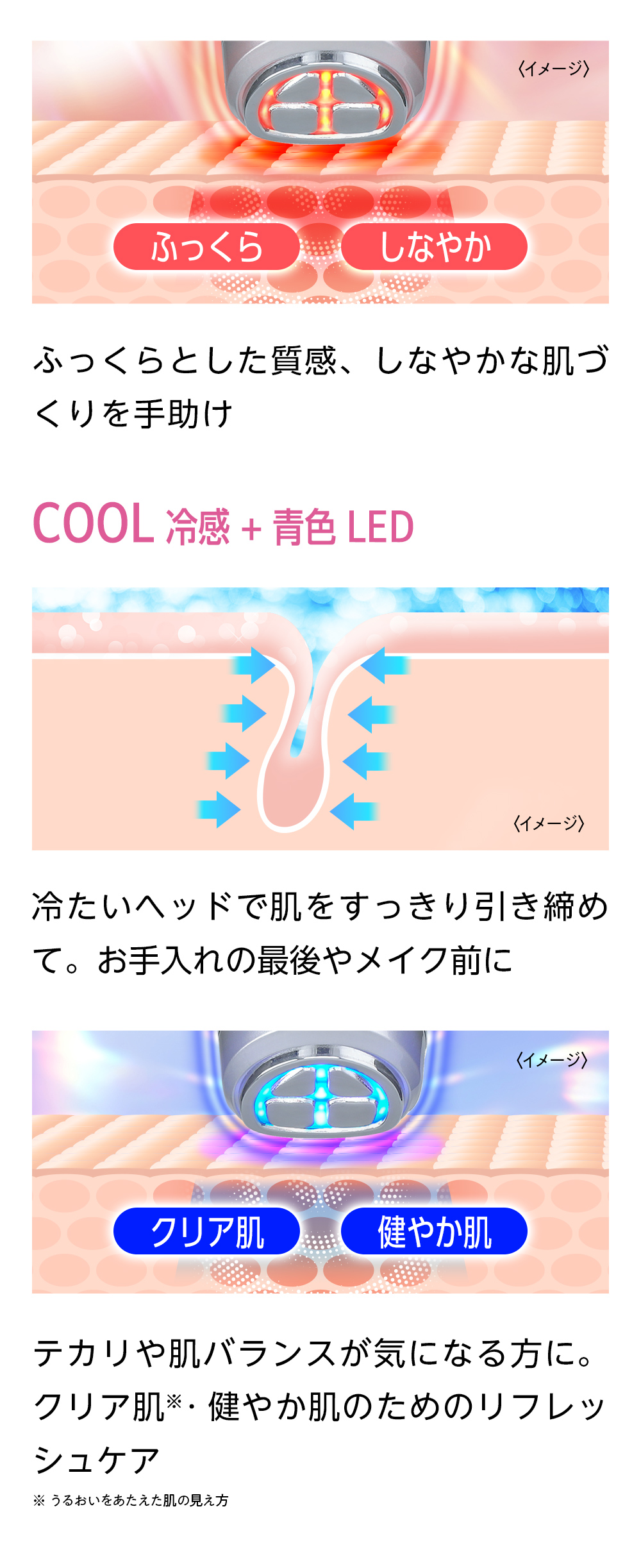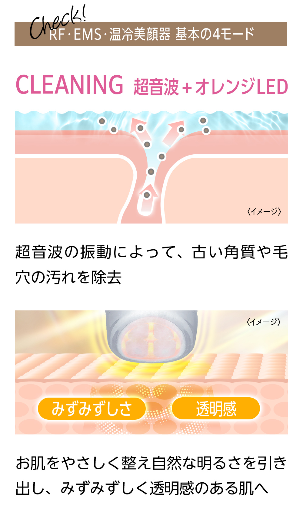 ✅ 【温冷美顔器×LEDフォトケア】温熱モードは肌をやさしく温めてリラックス、冷却モードは清涼感を与えながらすっきり引き締め。さらにレッド・オレンジ・ブルーの3色LEDフォトケアで、乾燥やくすみなどの肌悩みをサポート。季節を問わず快適に使用できる温冷美顔器です。